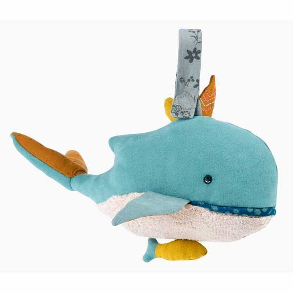 La Balena Moulin Roty è un dolcissimo e poetico carillon per neonati in peluche, pensato per accompagnare i primi sonni con una melodia delicata e rassicurante.