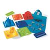 Nella confezione di Golfy sono contenuti: 10 biglie in vetro, 6 arrivi buca numerati da bandierina, 2 rettilinei direzionali, 1 sacca uso trasporto.