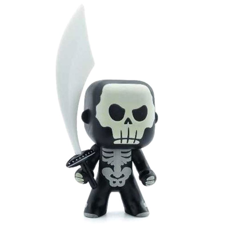 La confezione contiene: il personaggio Skully della linea Arty Toys Djeco, e la spada, entrambi fluorescenti.