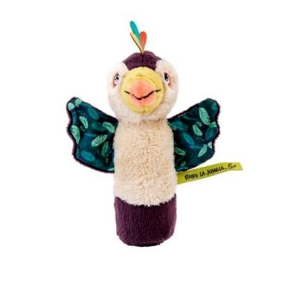 Le ali lunghe e sottili lo rendono afferrabile anche dai più piccoli mentre la forma cilindrica è pensata per allenare le capacità del bambino di afferrare e di stringere. Il sonaglio in stoffa quando viene schiacciato emette un simpatico squittio